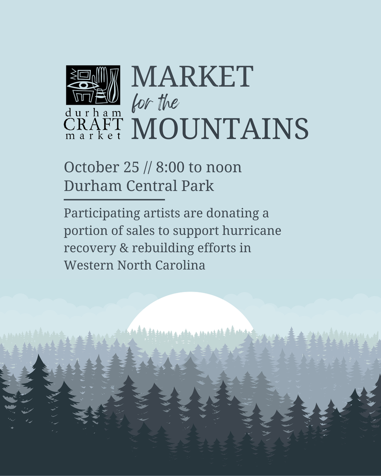 Saturday, Oct 25th. "Market for the Mountains." Helene Recovery fundraiser. Location: adjacent to the Farmers Market Pavilion in Downtown Durham. 8-12 am. Click here for more info. Staff Attending: Katie